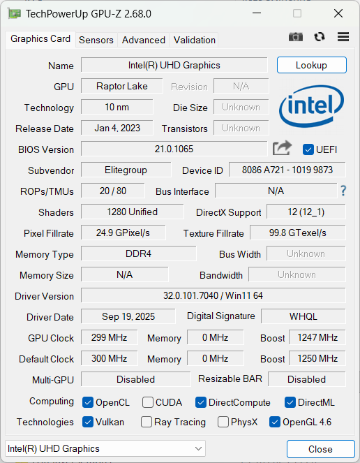 Intel Iris Xe Graphics (80 EU, до 1,25 ГГц)