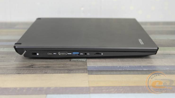 Усі інтерфейси та роз’єми розташувалися на боковинах. Зліва є отвір замка Kensington, USB 3.2 Gen 2 Type-C,  HDMI, USB 3.2 Gen 1, комбінований аудіороз’єм та кард-рідер microSD.
