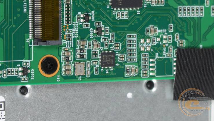 На нижній кришці розміщено чотири гумові 4-мм ніжки з чудовим зчепленням, решітки стереодинаміків по краях і вентиляційні отвори системи охолодження. Тут також є наліпка з інформацією про параметри живлення — 12 В при 2 А, що сумарно відповідає потужності 24 Вт.