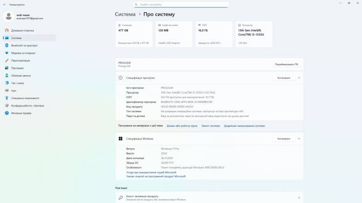 Модель Prologix Optima S15-125 (PLS15.4BXN.169) оснащена 10-ядерним процесором Core i5 13-го покоління з інтегрованою графікою Intel Iris Xe Graphics, 16 ГБ ОЗП із можливістю подальшого розширення та SSD на 512 ГБ. Такого оснащення більше ніж достатньо для щоденних завдань - від веб-серфінгу й роботи з офісними документами чи бухгалтерськими програмами до перегляду відео. А от наскільки ноутбук гучний, гарячий, і як довго працює від батареї — про ці та інші важливі аспекти розповімо далі.
