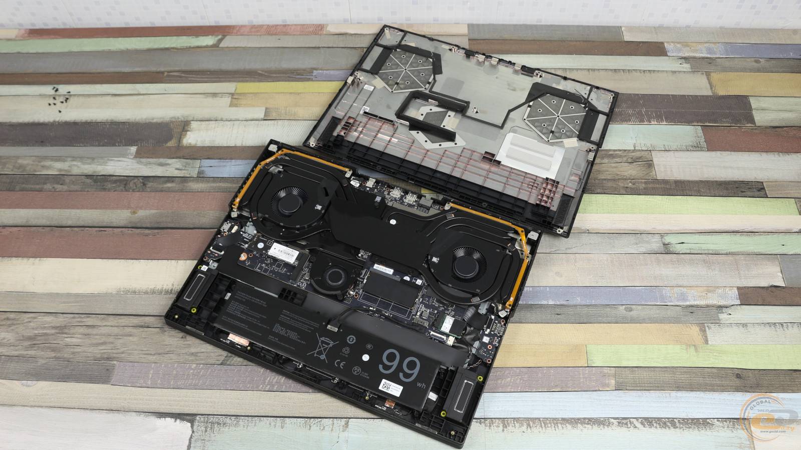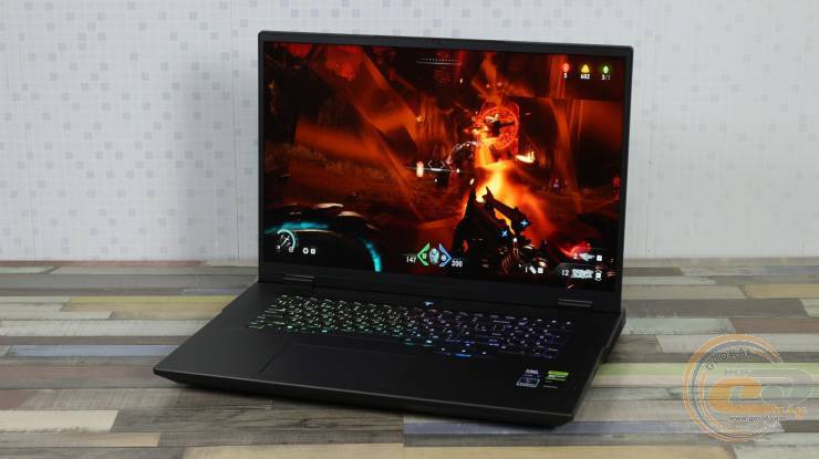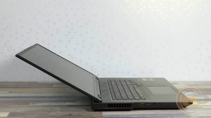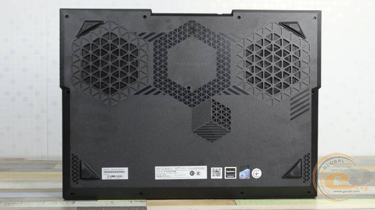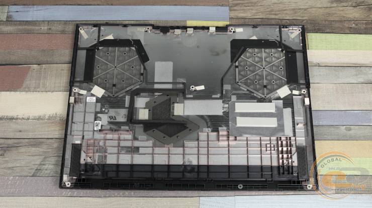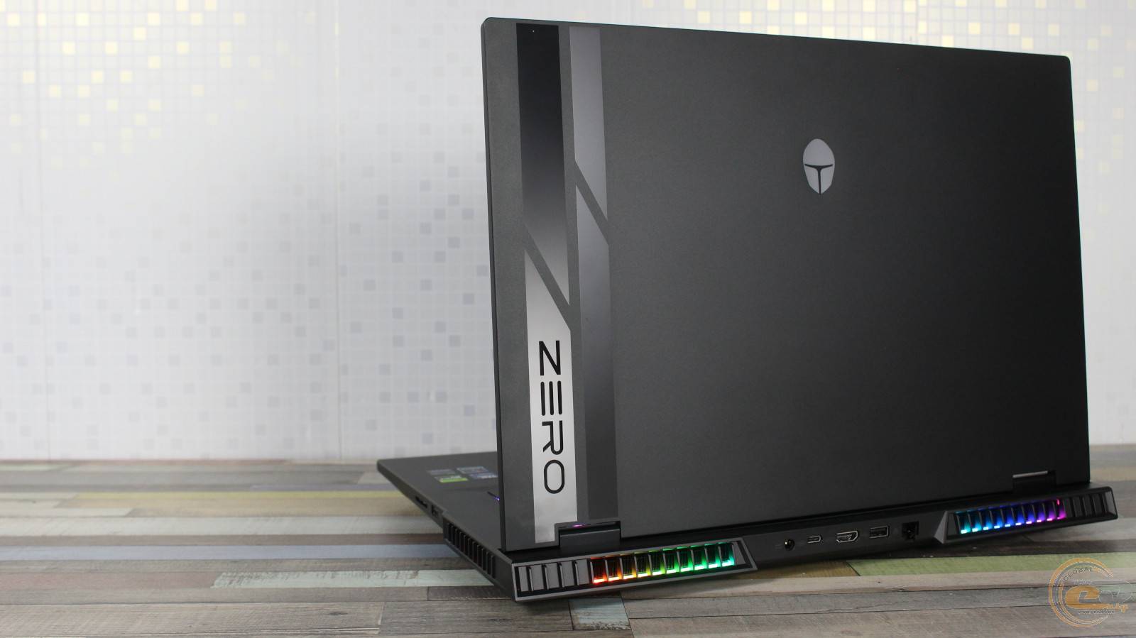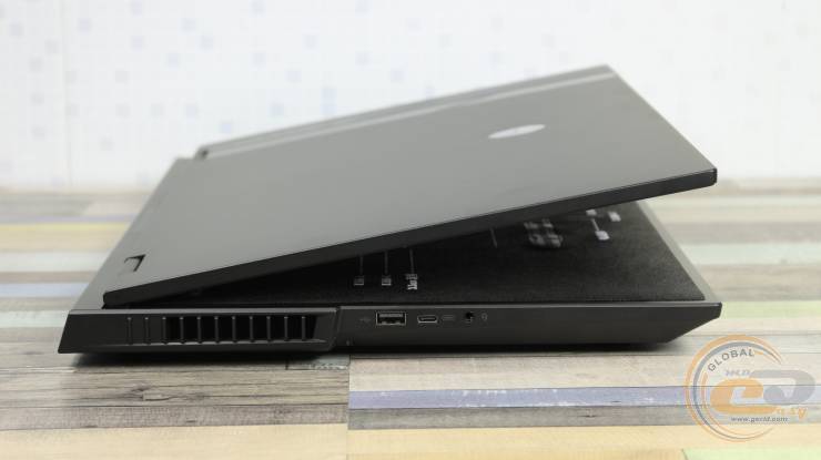 На тильній стороні ноутбука можна побачити масивні вирізи системи охолодження, які виробник оснастив яскравим підсвічуванням. За бажанням його можна налаштувати у фірмовому ПЗ.