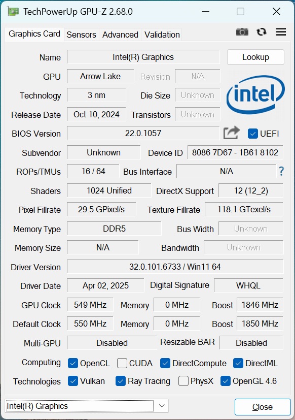Intel Graphics (4 ядра Xe) (1024EUs @ 550 – 1850 МГц) |