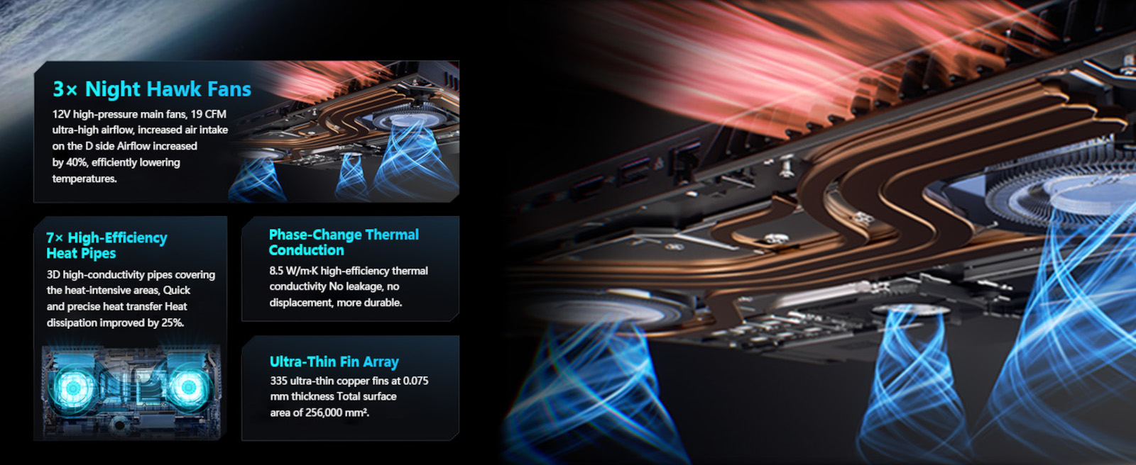 Окремої уваги заслуговує система охолодження. Три вентилятори ефективно виконують свою роботу, дозволяючи гарячому Intel Core Ultra 7 255HX стабільно працювати на високих частотах навіть у найтяжчих сценаріях навантаження.