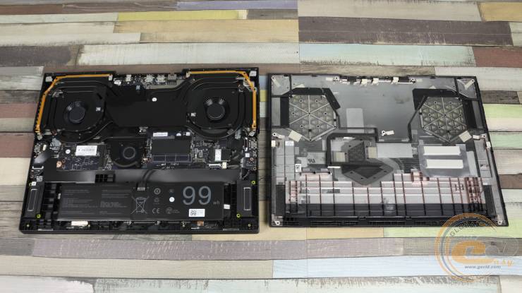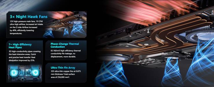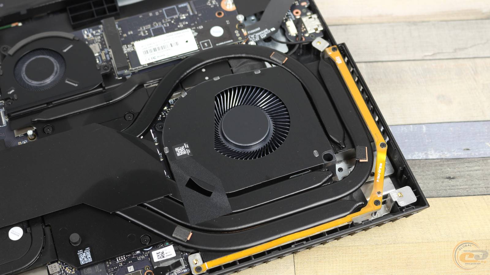 Система охолодження Thunderobot Zero 18 Pro має назву Black Hole та складається з трьох вентиляторів Night Hawk і семи теплових трубок, що відводять тепло від масивного радіатора. Гаряче повітря виводиться назовні не лише через тильну сторону, а й з боків лептопа. Завдяки тому, що під кожним кулером у корпусі зроблений виріз – маємо доволі ефективний забір повітря через нижню кришку. До того ж виробник у якості термоінтерфейса використовує термпопасту з фазовим переходом.