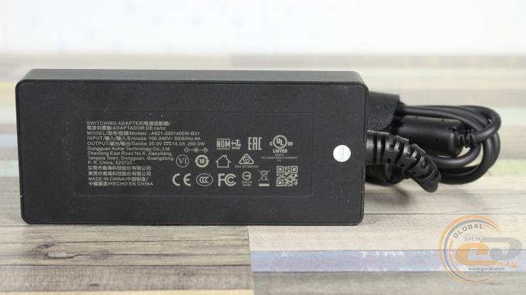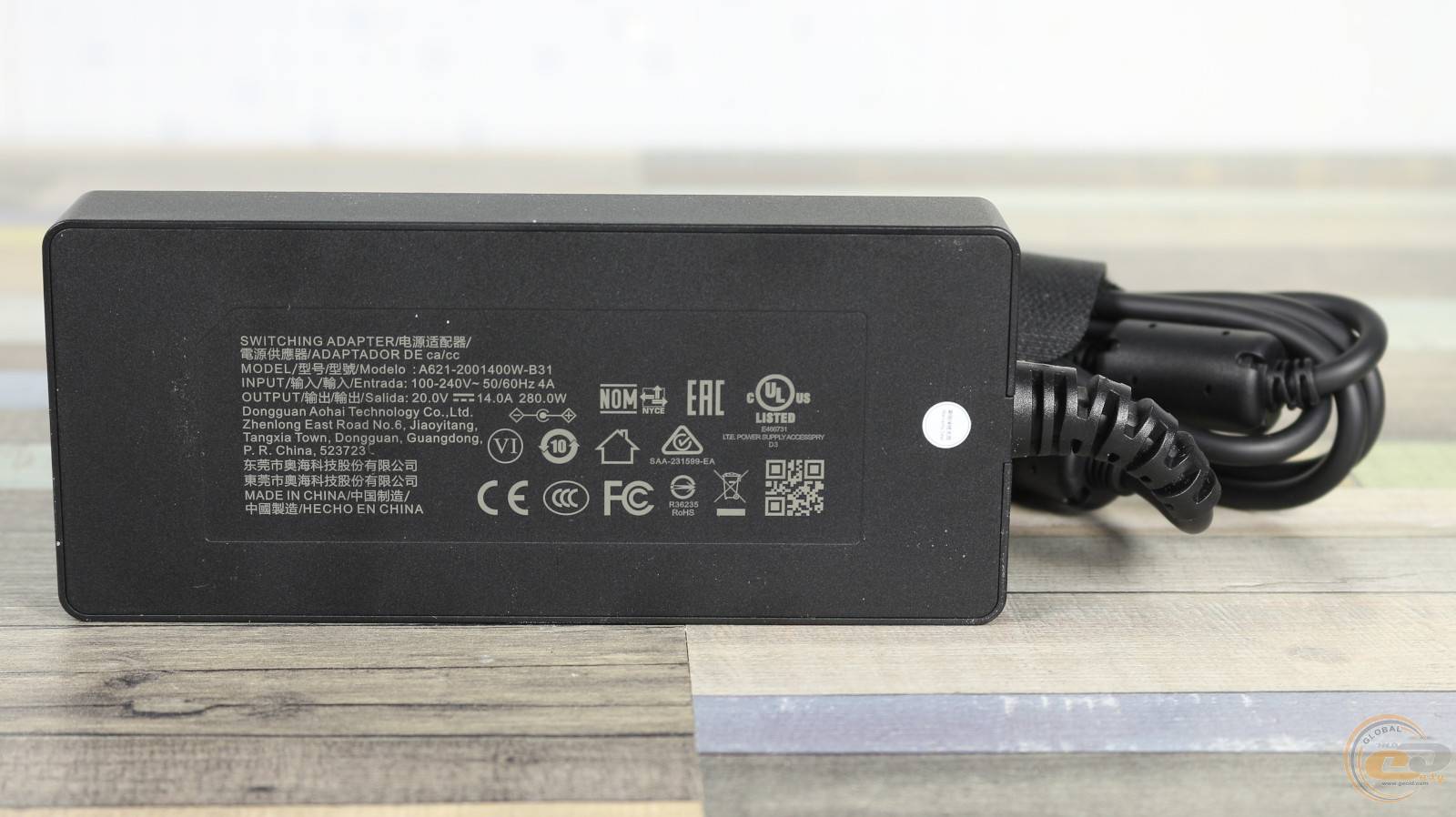 У комплекті постачається блок живлення AOHAI A621-2001400W-B31 потужністю 280 Вт. Параметри вхідного сигналу становлять 100 - 240 В при силі струму 4 А і частоті 50 - 60 Гц. На виході отримуємо 20 В при 14 А.