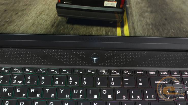У цій моделі доволі насичене підсвічування отримали: логотип на верхній кришці, отвори системи охолодження та клавіатура.