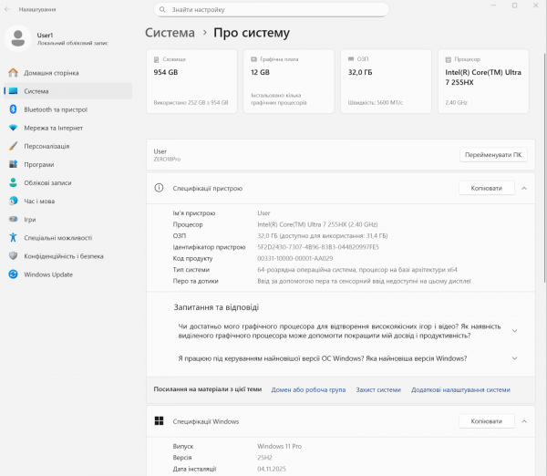 - високопродуктивний тандем Intel Core Ultra 7 255HX та мобільної RTX 5070 Ti (із TGP у 140 Вт);
