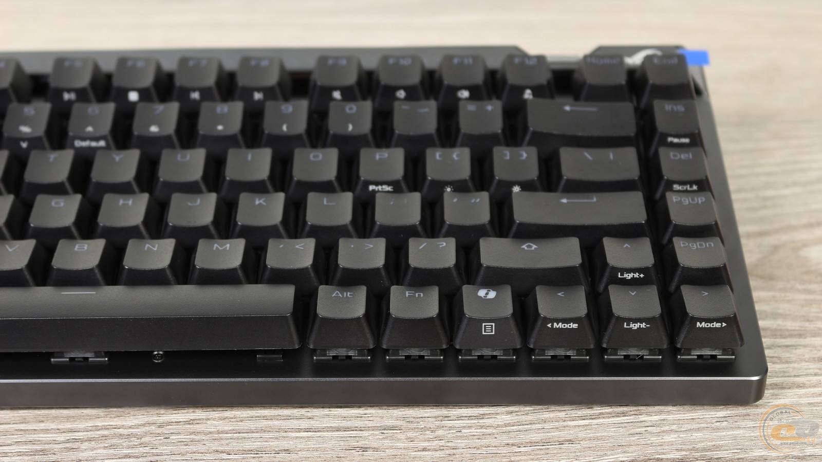 Fn-клавішу винесено вправо, поруч зі стрілками, що звільняє нижній лівий кут для класичної схеми Ctrl–Win–Alt. Доступ до контекстного меню реалізовано через комбінацію Fn + правий Ctrl.