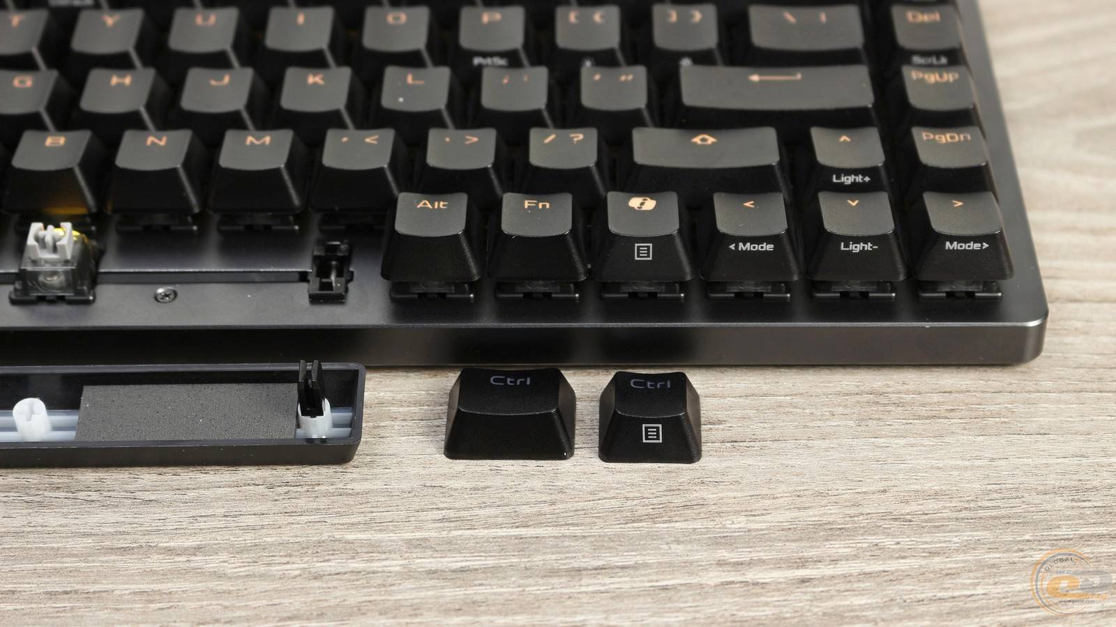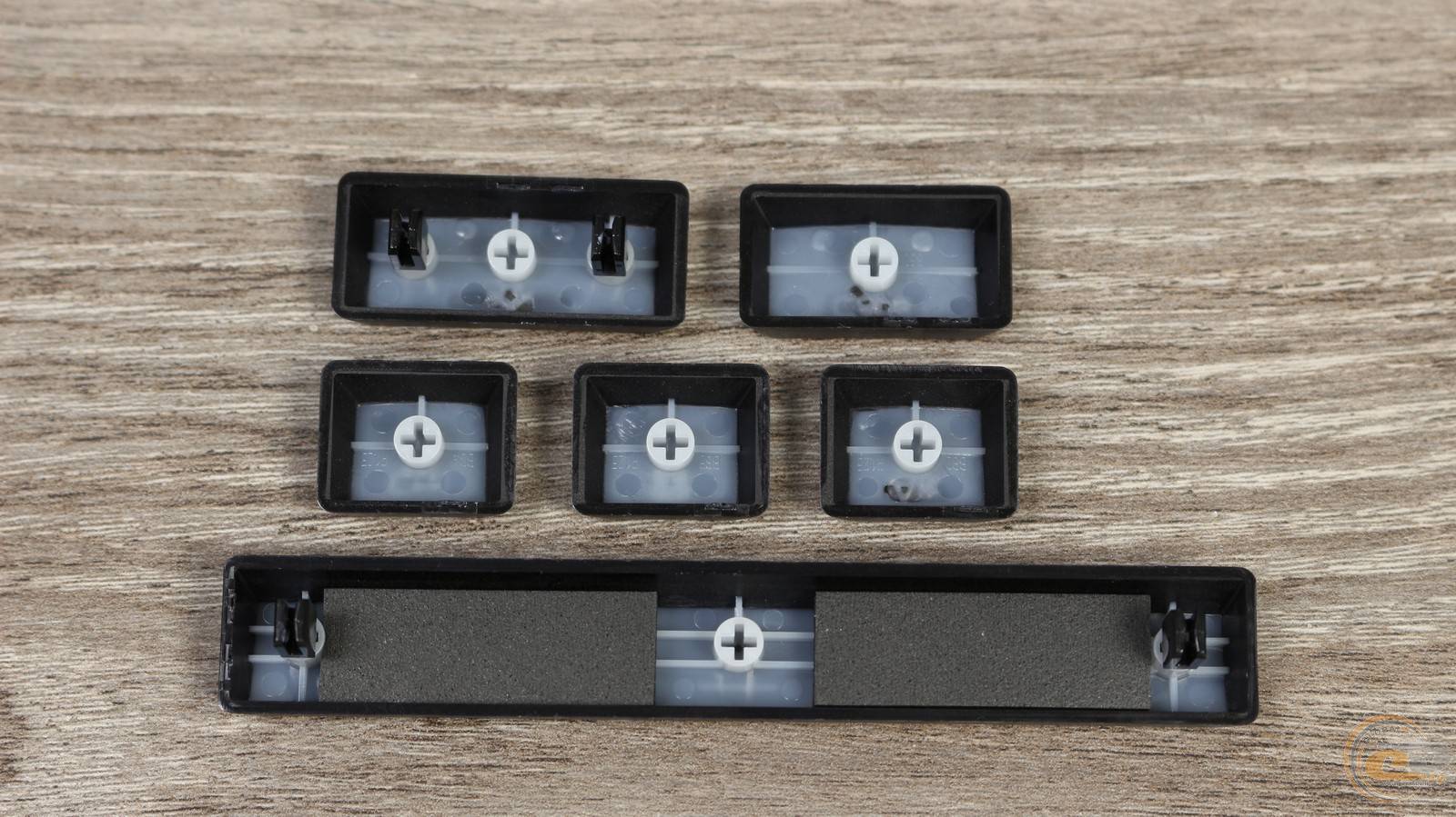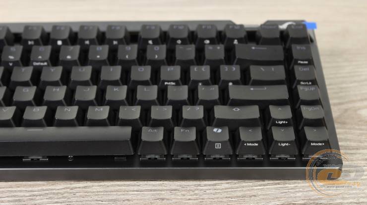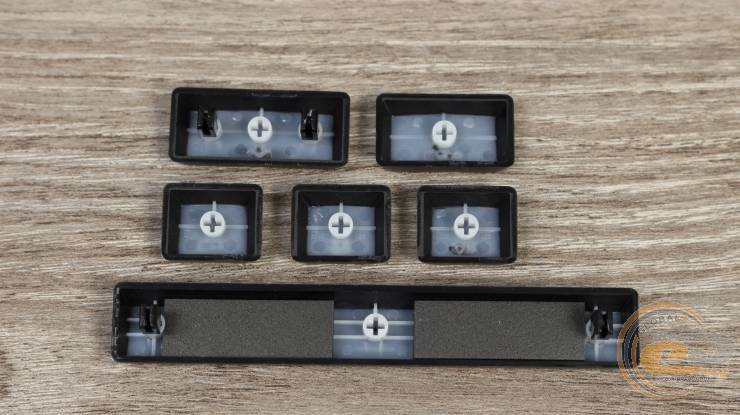 Якість відливки — на високому рівні: символи чіткі, підсвітка проходить рівномірно. Єдиний нюанс — нанесено лише латинську розкладку, що може бути критичним для частини користувачів. Водночас, завдяки стандартному хрестоподібному кріпленню, кейкапи легко замінити на сторонні. Світлодіоди на платі розташовані з північної сторони, тому при встановленні кейкапів із Cherry-профілем можливе явище інтерференції.