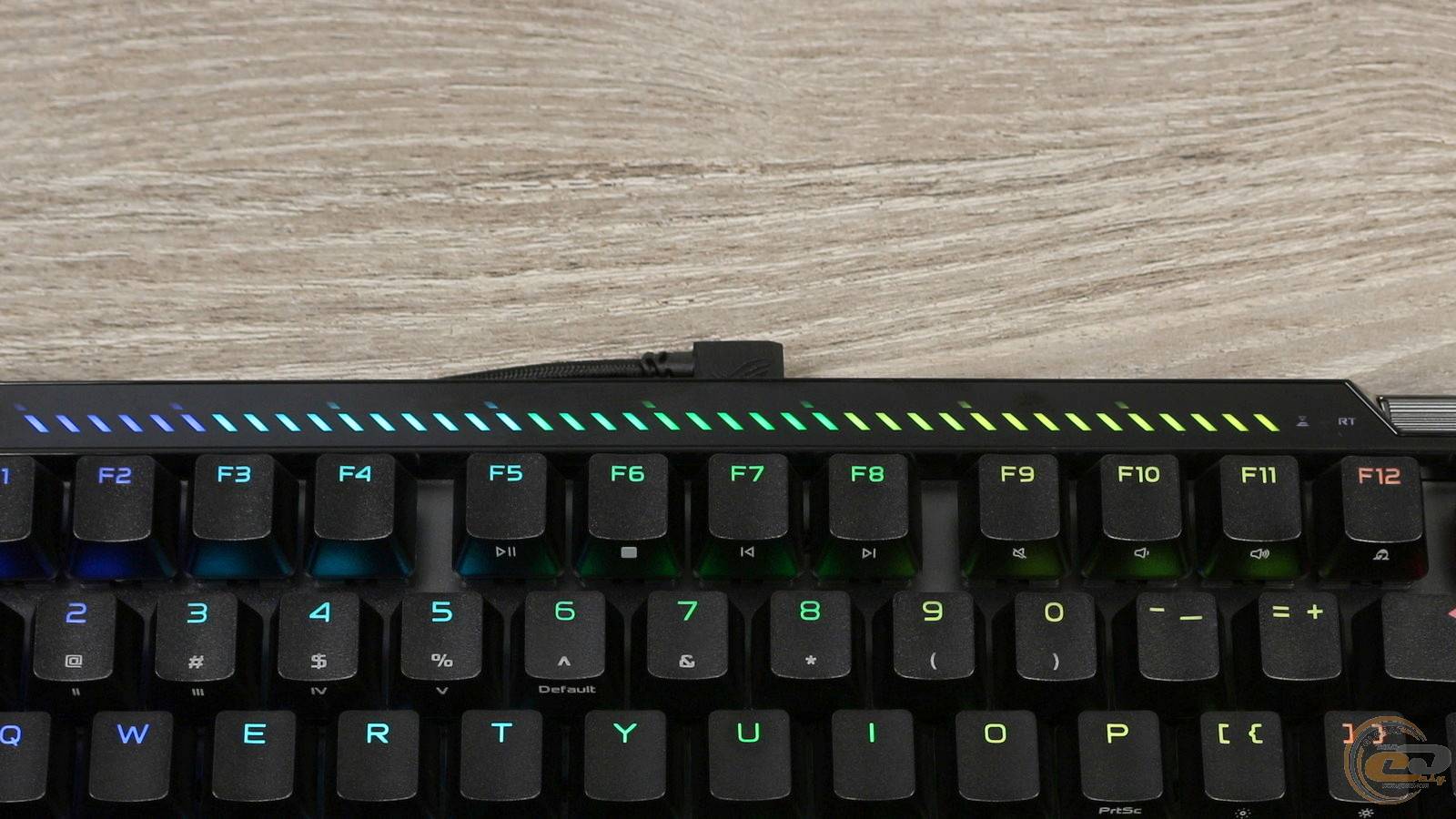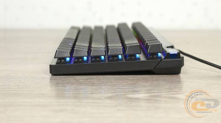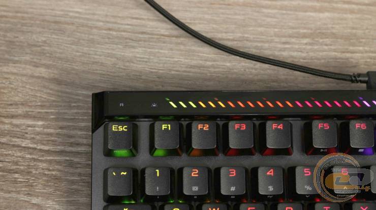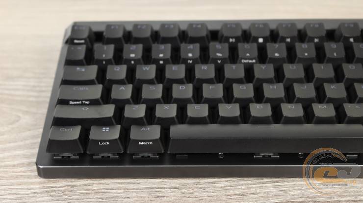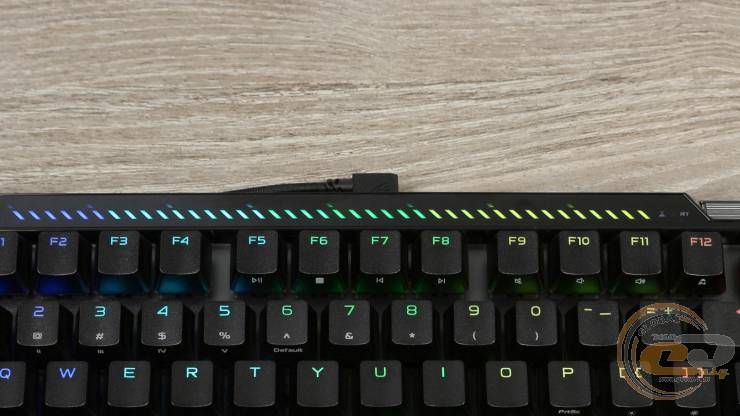Світлодіодна панель над цифровим блоком виконує не лише декоративну, а й інформативну функцію: відображає поточний режим роботи клавіатури та зміну параметрів — точка спрацювання, RT, яскравість підсвітки.