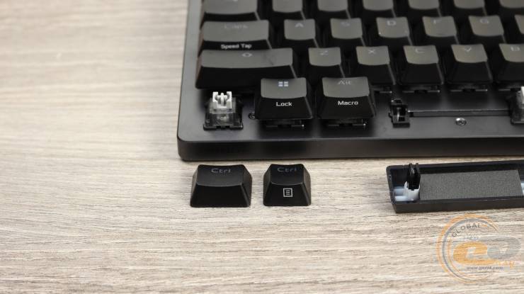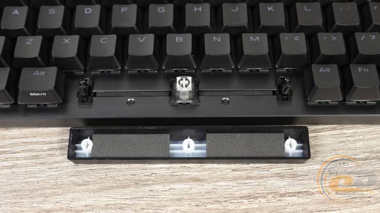 Особливої уваги заслуговує реалізація пробілу. Під ним розміщено додаткову шумопоглинальну прокладку, яка гасить вібрації та приглушує звук натискання.