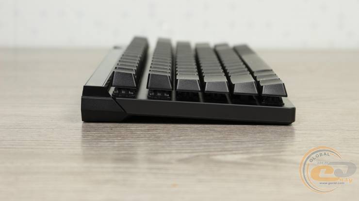 Клавіатура виконана у стилі «скелетон»: клавіші та верхня частина перемикачів виступають над корпусом, що додає агресивного вигляду та забезпечує чітку тактильну реакцію.