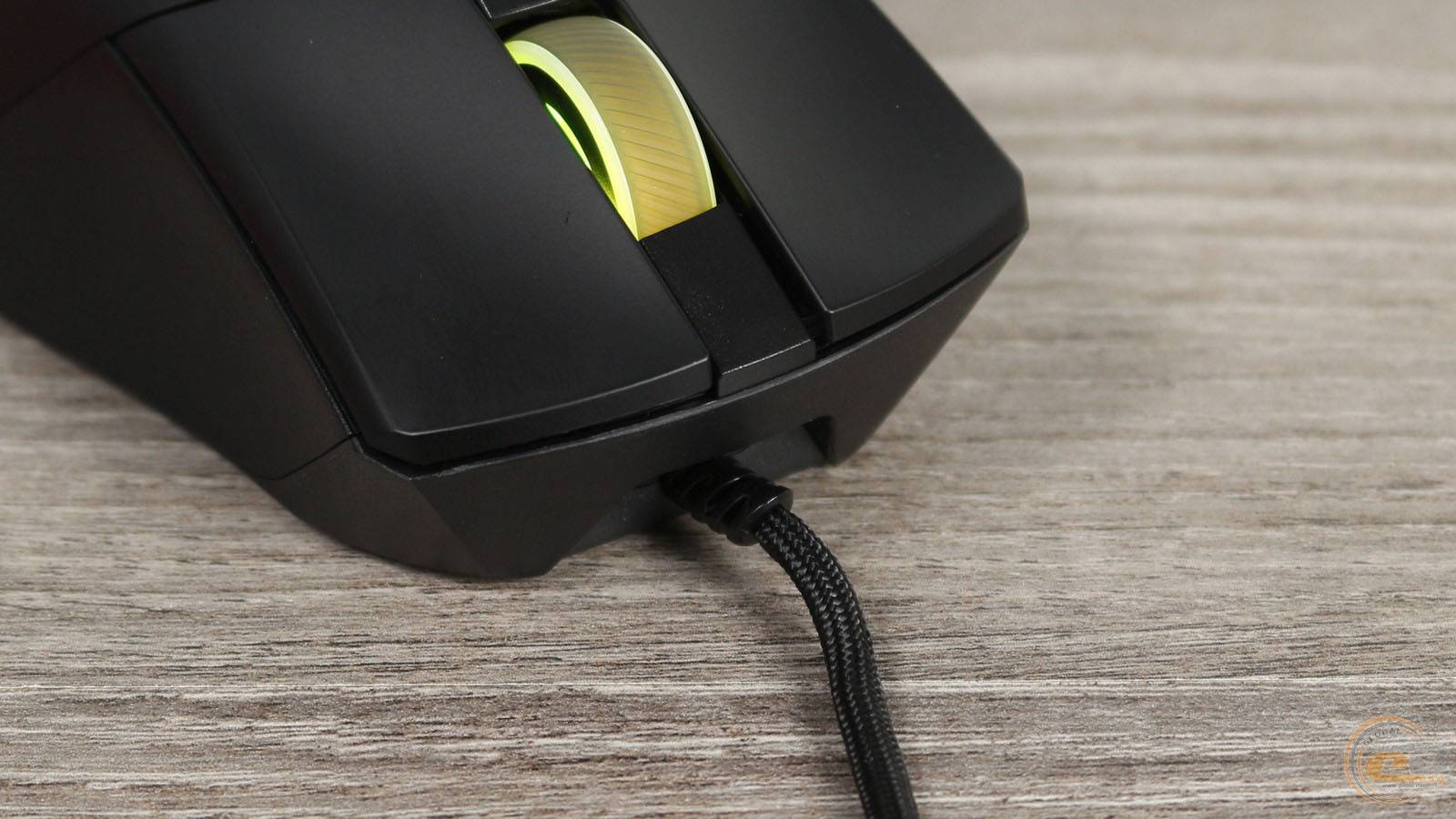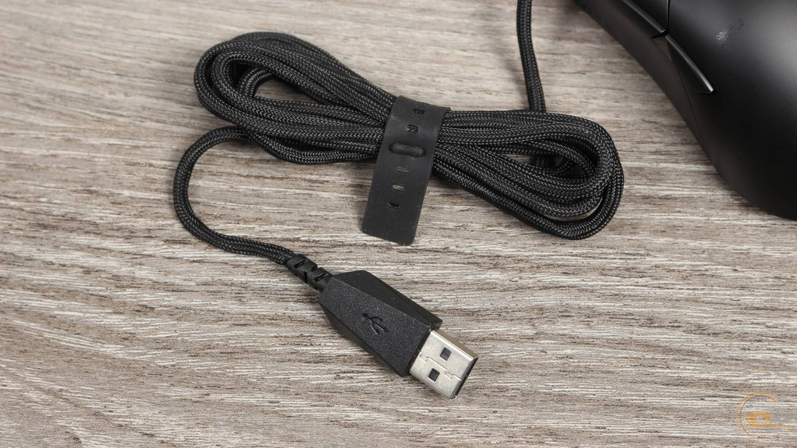 Кабель незнімний, довжиною два метри, з роз’ємом USB Type-A та фіксуючою силіконовою стрічкою. Обплетення ROG Paracord гнучке й легке, з мінімальним опором.