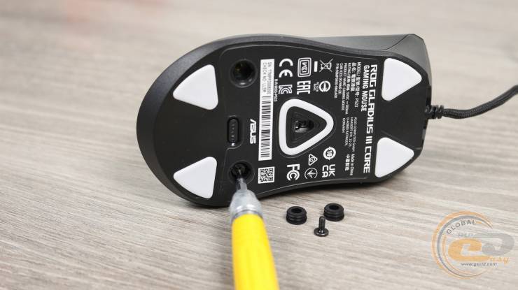 По обидві сторони від енкодера розташовані роз’єми ROG Push-Fit, що підтримують заміну мікроперемикачів.