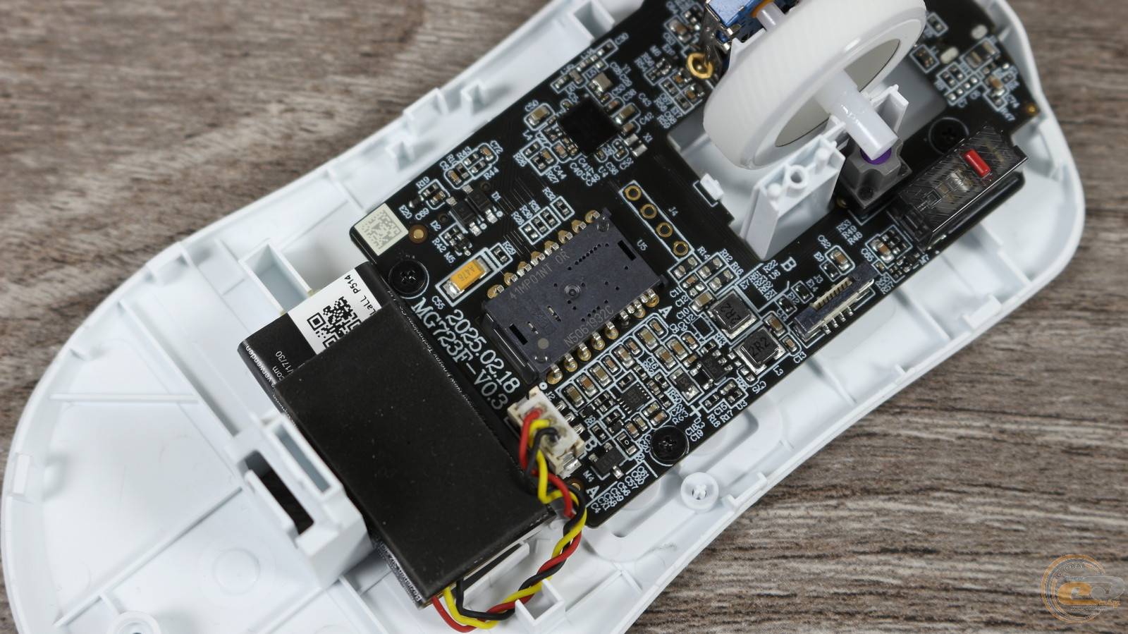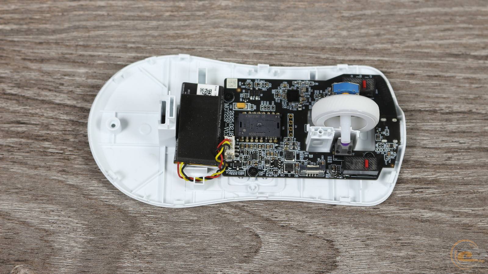 Миша оснащена енергоефективним контролером Nordic, що дозволило зменшити споживання. Батарея — компактна, і хоча хотілося б трохи більше ємності, тут боротьба йшла за кожен грам, і це виправдано.