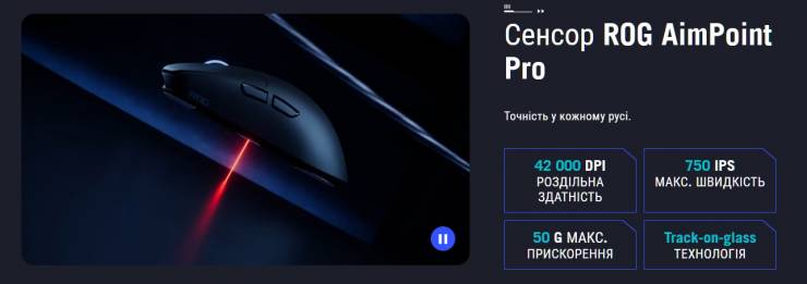 - ультралегка вага 48 г і топовий фірмовий сенсор ROG AimPoint Pro забезпечують миттєву реакцію та бездоганне відстеження рухів;
