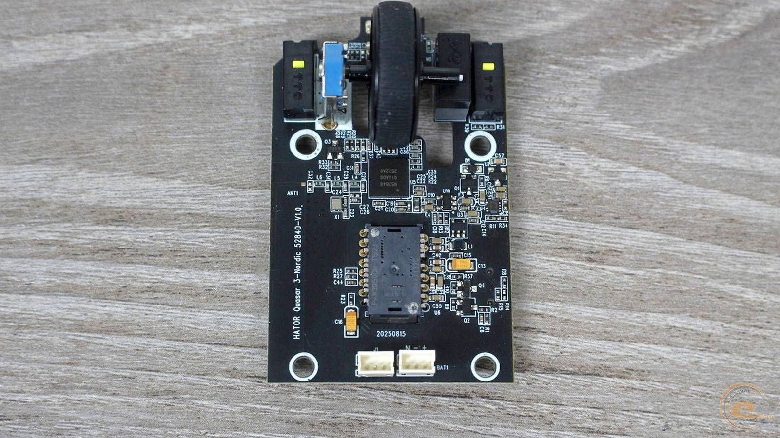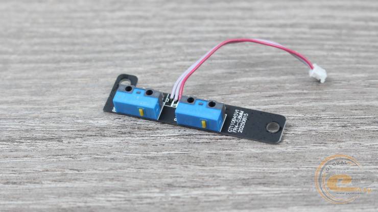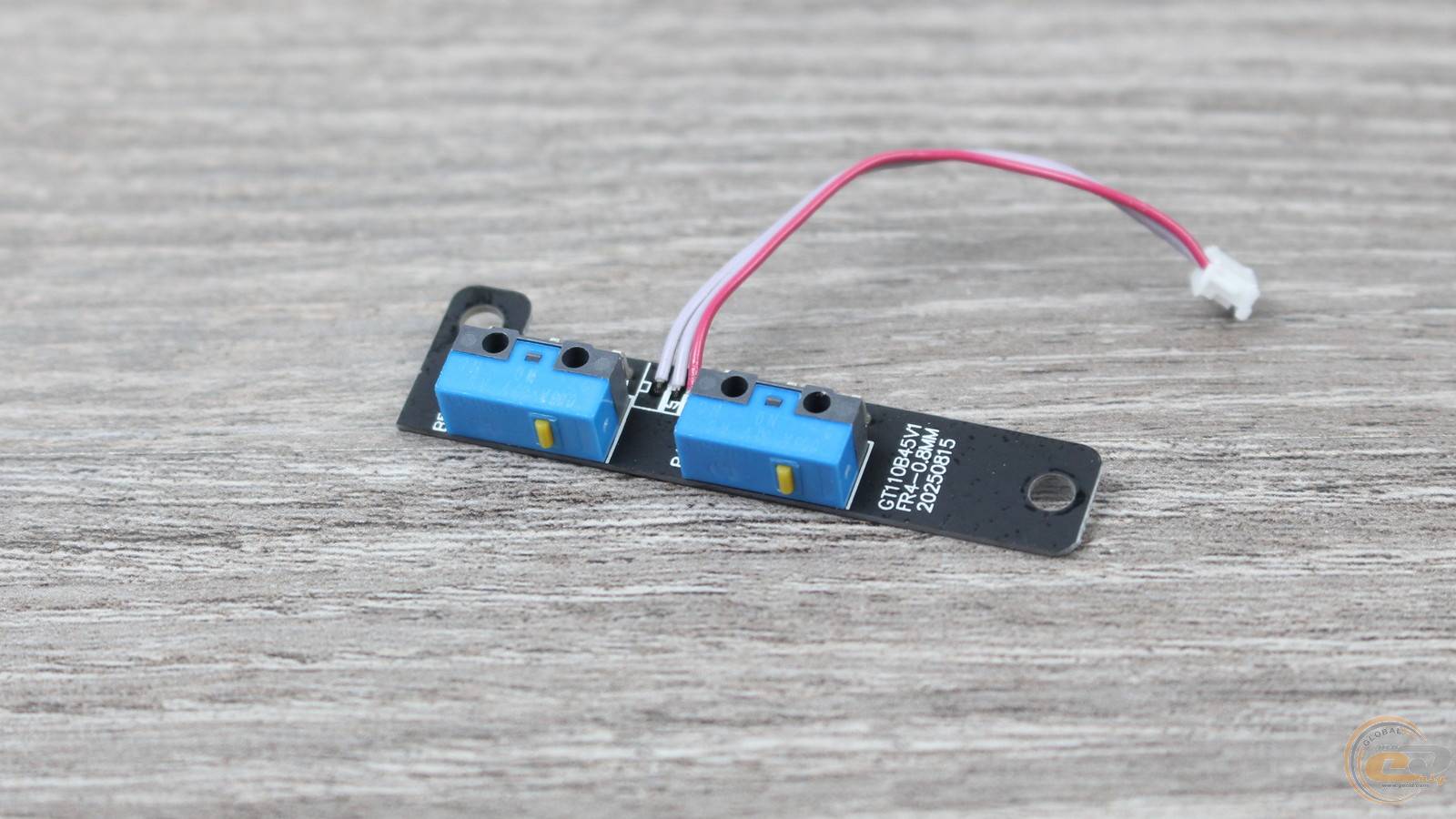 Ця плата має власне маркування (GT110B45W RX‑08AWM) і кріпиться двома гвинтами до внутрішньої стінки корпусу. На ній встановлено два перемикачі HUANO Blue Shell Yellow Dot із заявленим ресурсом у 5 млн натискань. Кнопки працюють чітко, без люфту, що додає відчуття надійності під час використання.