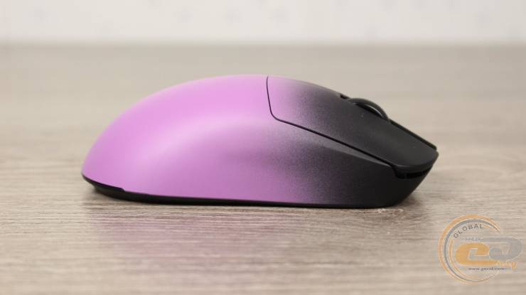 Праворуч корпус має плавний виступ для безіменного пальця та мізинця, що додає комфорту при тривалому використанні й покращує контроль над мишею.