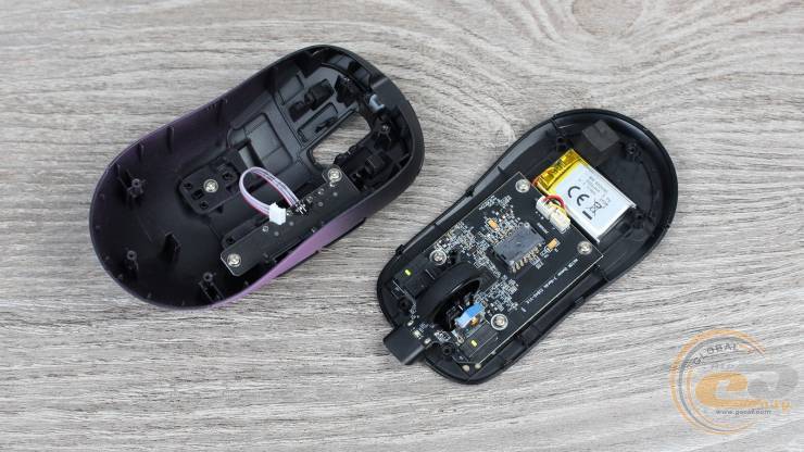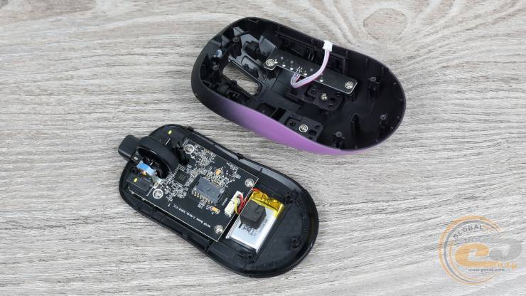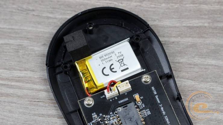 Усередині встановлено акумулятор ємністю 300 мА·год, який забезпечує тривалу роботу в бездротовому режимі. Повний цикл заряджання займає близько двох годин. За стандартної частоти опитування 1000 Гц запасу енергії вистачає приблизно на чотири доби активного використання, тож у звичайному сценарії заряджати мишу доведеться раз на тиждень або навіть рідше. Перехід на режим 8000 Гц суттєво скорочує час автономної роботи, проте й у цьому випадку показники залишаються помітно кращими, ніж у попередньої моделі.