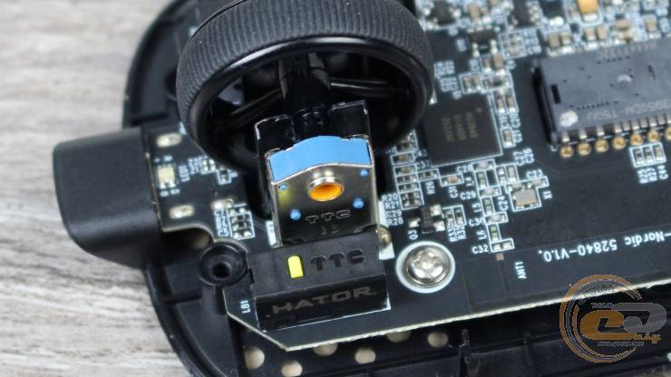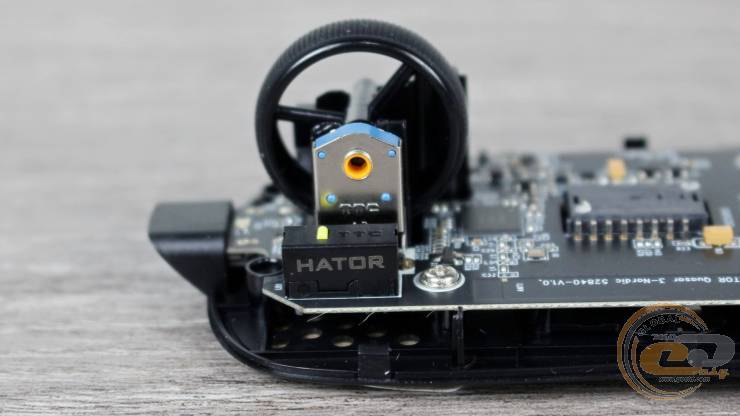 Основні перемикачі — HATOR Optical 100M (виробник TTC) із ресурсом у 100 млн натискань та можливістю налаштування дебаунсу. За замовчуванням затримка відсутня, що є суттєвою перевагою над механічними перемикачами. Клік чіткий, із коротким ходом і стабільним зусиллям, без люфту чи паразитних коливань. Сила спрацьовування становить 60 gf ±5%.