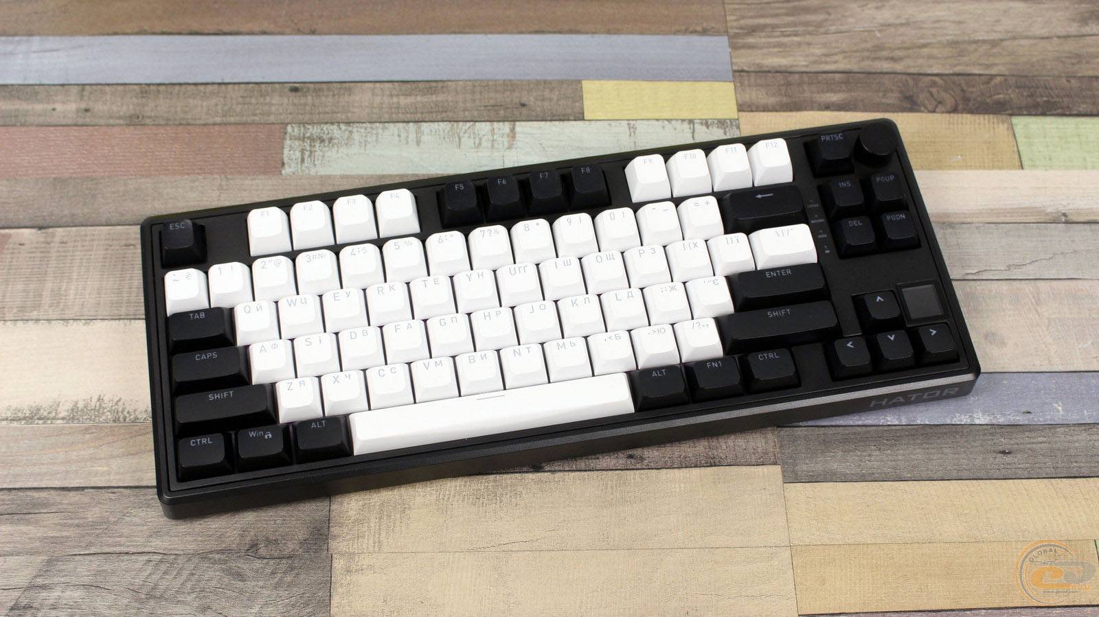 Кейкапи виготовлені методом подвійного лиття (double‑shot) із прозорим внутрішнім шаром, що забезпечує наскрізне підсвічування символів. У комплекті немає додаткових наборів із російськими легендами, проте додається рожевий кейкап із емблемою та фірмовим орнаментом HATOR. За висотою він відповідає двом верхнім рядам, тому може бути встановлений на Esc, PrtScr або ~ — залежно від уподобань користувача.