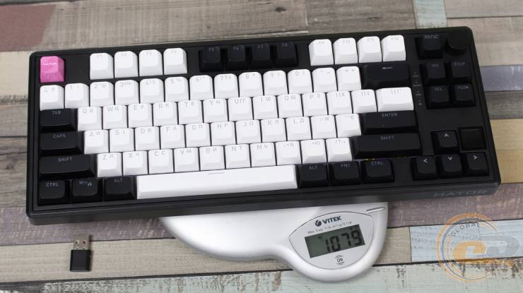 Вага клавіатури за заявленими виробником даними становить 1040 г, тоді як наші виміри показали 1079 г. Це справжня «цеглинка»: масивна й важка, ближча за відчуттями до кастомних моделей із металевими корпусами, ніж до легких серійних клавіатур. Така маса гарантує стабільність на столі, але про мобільність тут говорити не доводиться.
