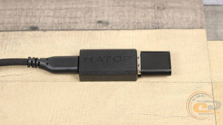 Верхня панель корпусу виконана з чорного пластику з матовою фактурою. Легка шорсткість поверхні створює приємні тактильні відчуття й водночас робить матеріал стійким до подряпин. На передній грані під блоком стрілок розташовано стриманий логотип HATOR, який органічно вписується в загальний дизайн.