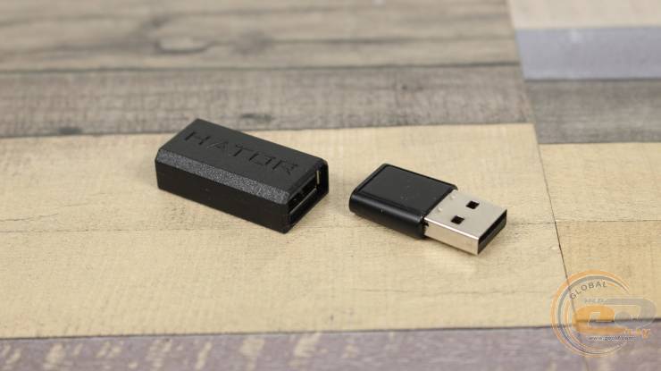 USB‑ресивер для роботи на частоті 2.4 ГГц підключається до комплектного кабелю через адаптер USB‑A до USB‑C. Він підтримує частоту опитування до 8000 Гц, що забезпечує максимально швидке реагування у бездротовому режимі.