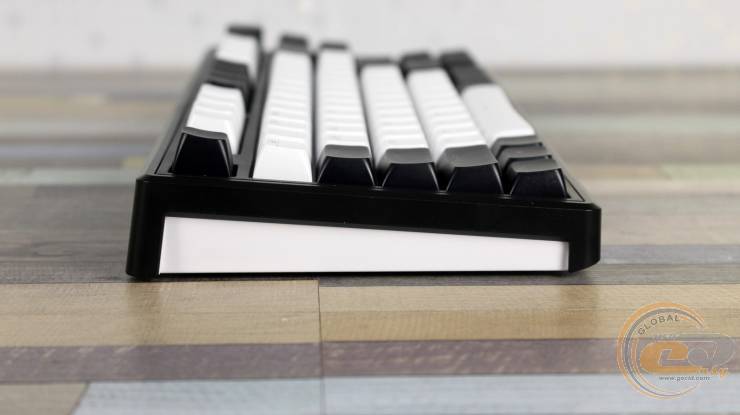 Візуально клавіатура виглядає гармонійно завдяки поєднанню білих і чорних кейкапів: світлі клавіші з легендами контрастують із чорними модифікаторами, утворюючи збалансований дизайн. Це рішення вдало підкреслює чорний верх корпусу, білий низ та білі бокові грані, створюючи стильний і сучасний образ.