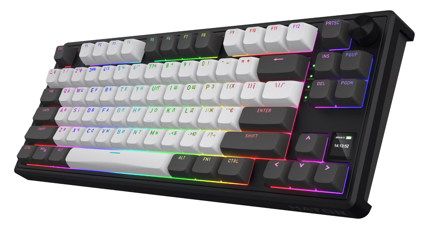 HATOR Skyfall 80 Pro Wireless виконана у формфакторі 80%. Це не типовий TKL на 87 клавіш, де просто відсутній цифровий блок праворуч.