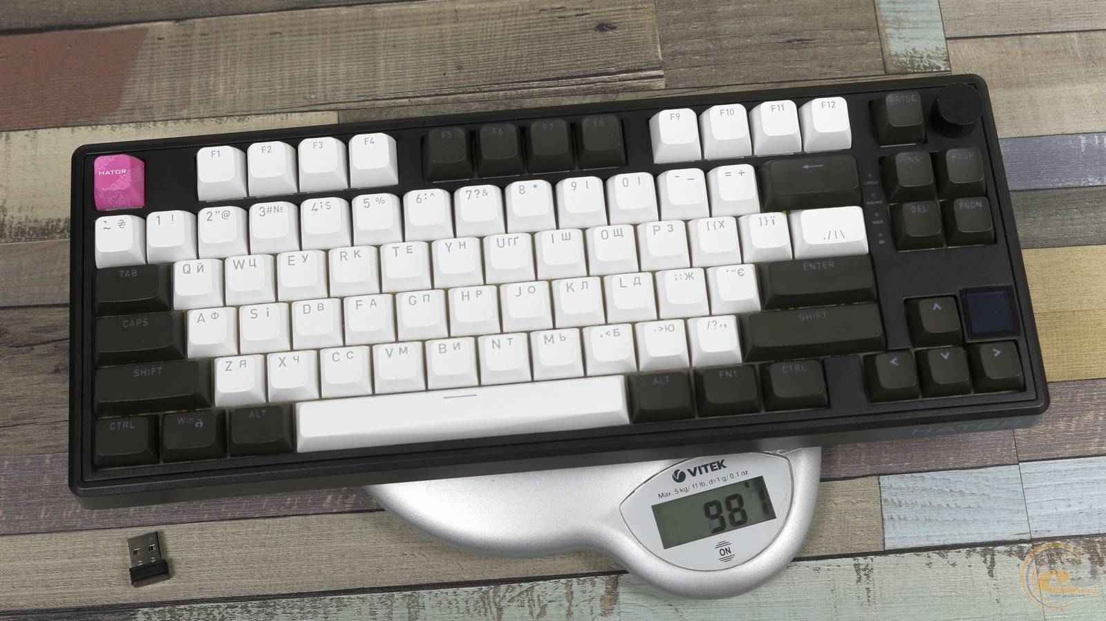 Вага клавіатури без кабелю, за нашими вимірами, становить 981 г, хоча виробник заявляє 970 г.