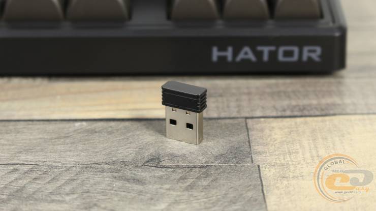 USB-ресивер для підключення на 2.4 ГГц зберігається в окремому відсіку під правою ніжкою клавіатури. Рішення практичне й дозволяє не турбуватися про втрату ресивера під час транспортування, хоча для доступу до нього потрібно підняти пристрій.