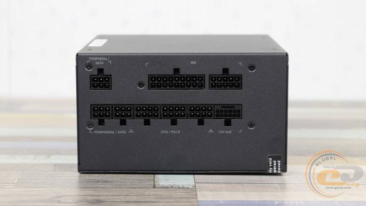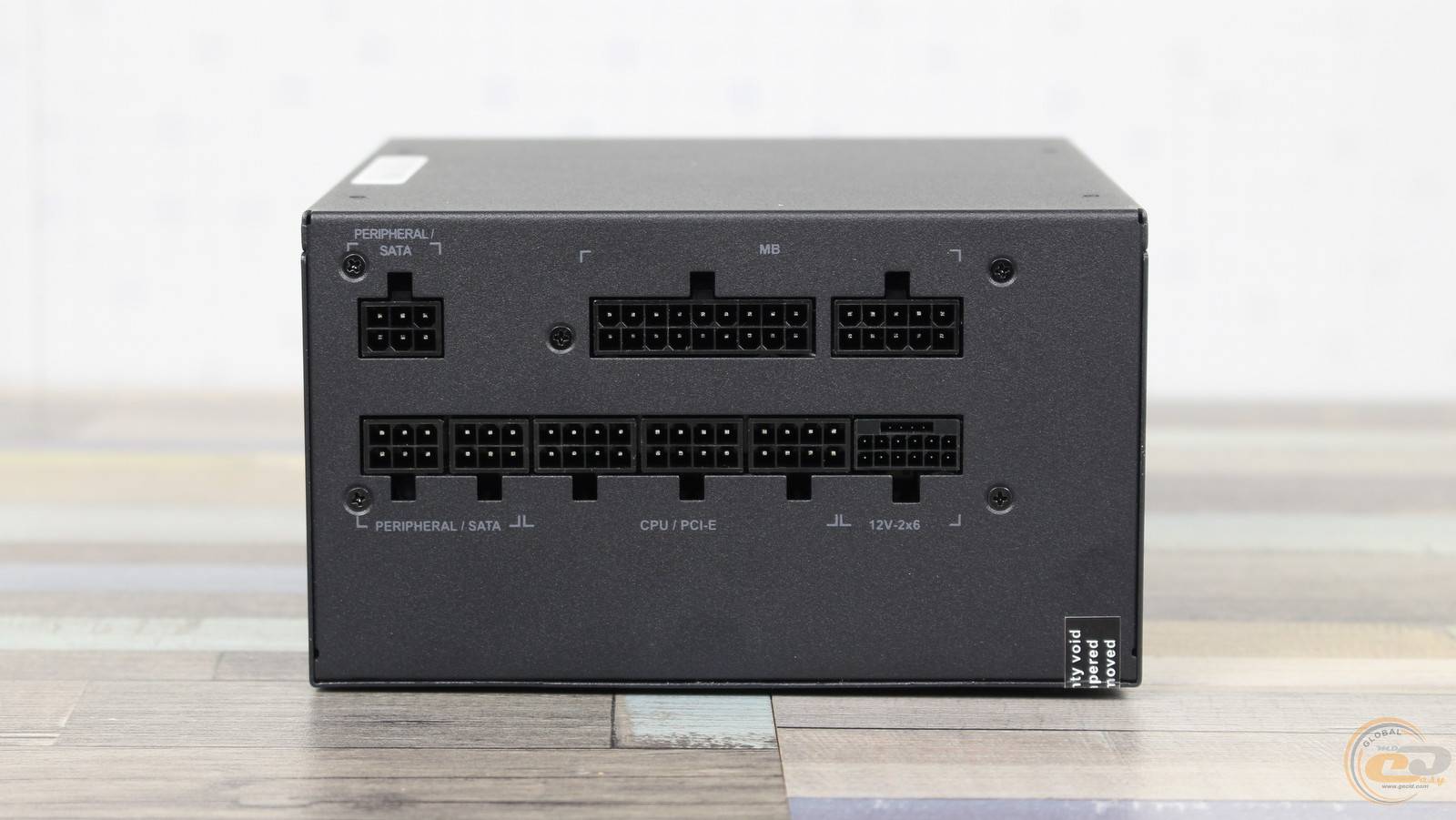 Основні роз’єми живлення представлені стандартним набором: 20+4-контактний ATX та пара 4+4-контактних ATX12V. Для відеокарт передбачено чотири 6+2-контактні PCIe на двох окремих кабелях, а «вишенькою на торті» є сучасний 600-ватний PCIe 5.1 (12V-2×6). Для периферії — шість SATA та три PATA на чотирьох окремих проводах.