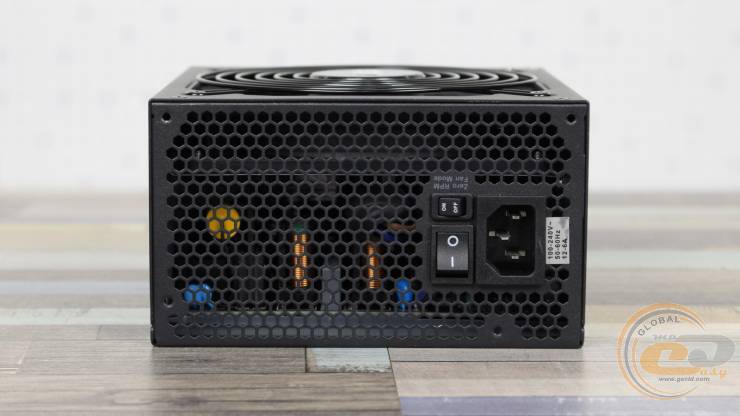 На тильній частині, крім стандартного роз’єму живлення, вимикача та вентиляційних отворів-«стільників», є також перемикач гібридного режиму роботи вентилятора.