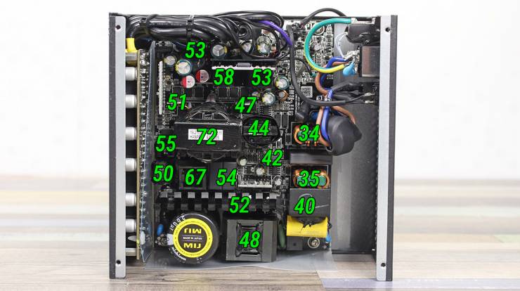 Відповідність сертифікації 80 PLUS Gold стала можливою завдяки використанню сучасної напівмостової резонансної схеми з DC-DC-перетворювачами. Саме така архітектура забезпечує стабільні вихідні напруги за різних навантажень.