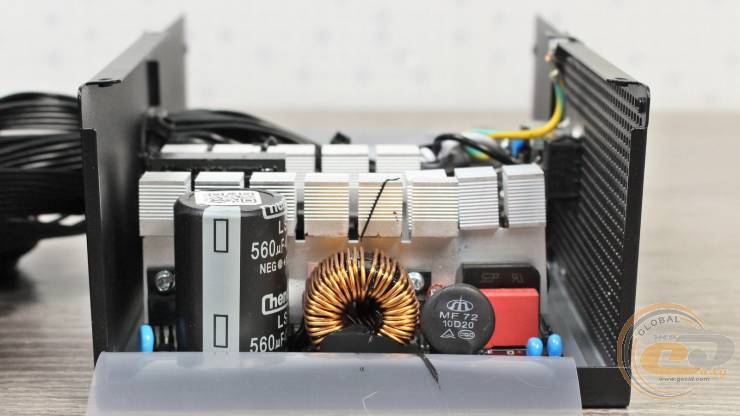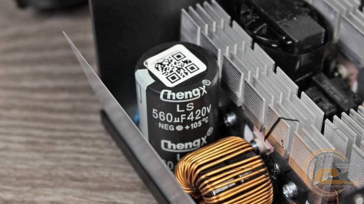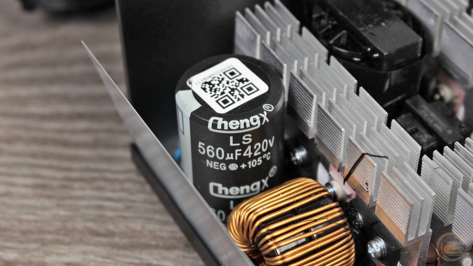 Вхідний конденсатор виробництва китайської компанії ChengX належить до високотемпературної серії і має ємність 560 мкФ — посередній показник для 800-ватного блока живлення.