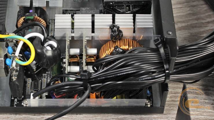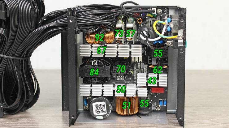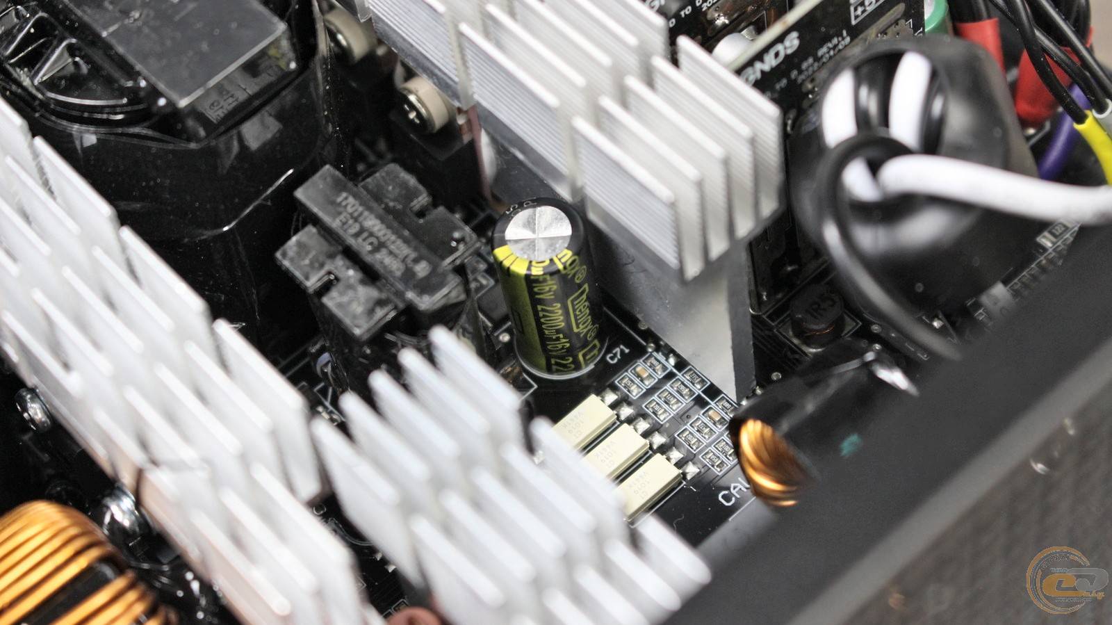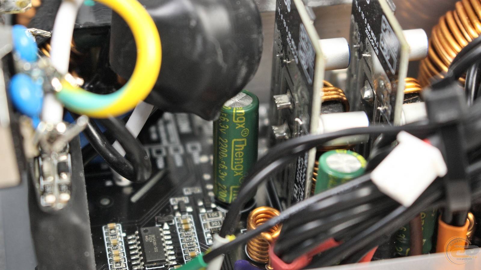 Втім, не обійшлося і без компромісів. Дросель каналу +12В сильно нагрівається, додатково підігріваючи розташовані поруч конденсатори. Тому навантаження блока живлення понад 650-700 Вт може значно скоротити термін служби. Також у більшості вузлів застосовані китайські конденсатори ChengX. Виняток становлять лише плати DC-DC-перетворювачів, де традиційно використовуються полімерні елементи.