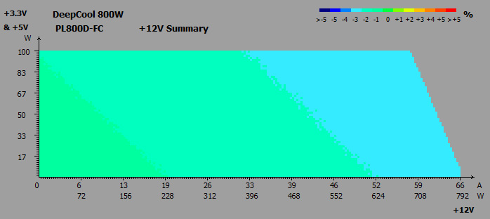 Вихідні показники пристрою також заслуговують похвали: просідання напруги нижче номіналу не спостерігається, а відхилення залишаються мінімальними, особливо на найзатребуванішому каналі +12В. На додачу блок живлення відзначається порівняно тихою і комфортною роботою у всьому діапазоні навантажень.