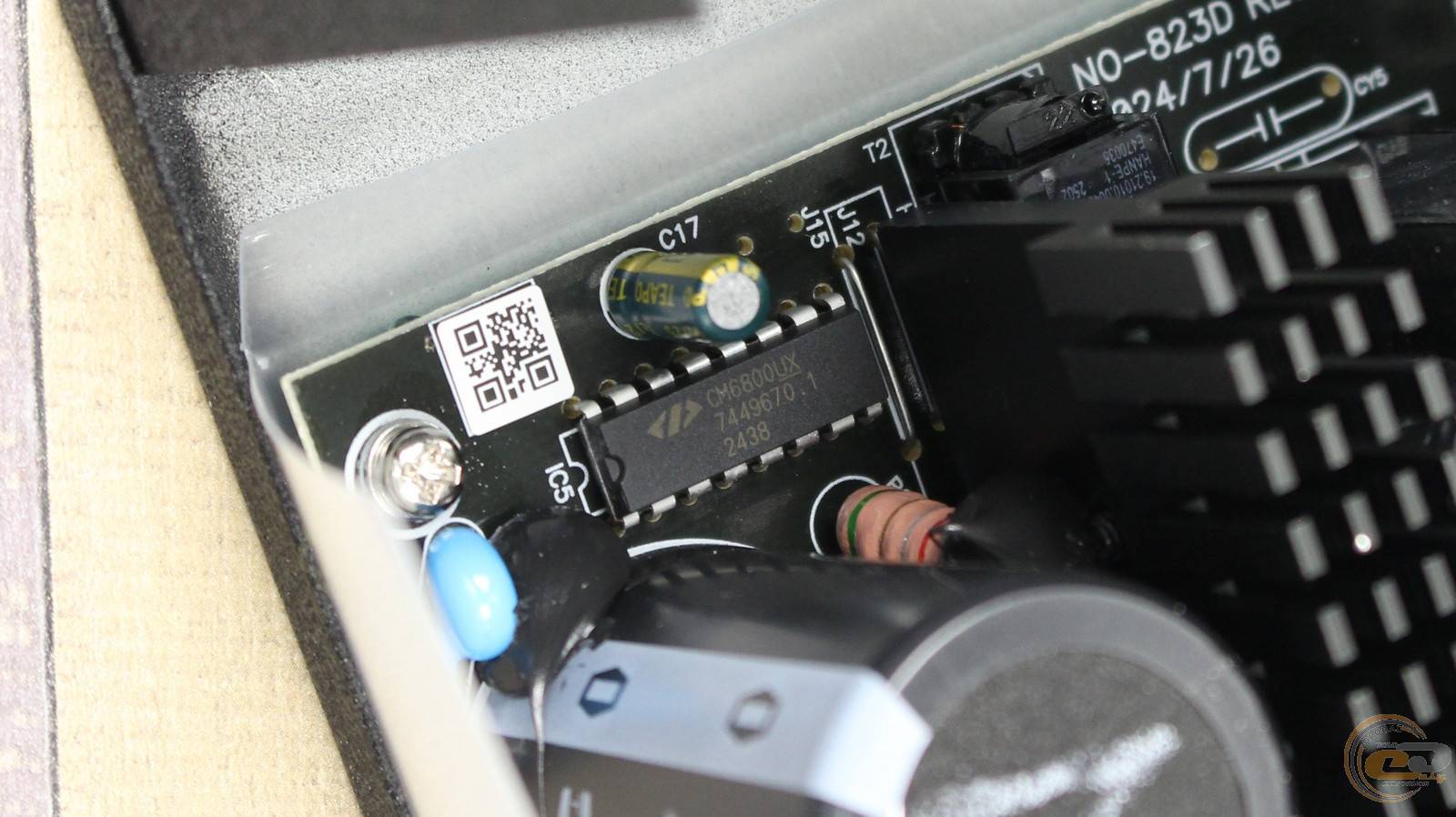 Поруч розпаяний чип CM6800UX, який поєднує функції ШІМ-контролера та контролера модуля APFC.