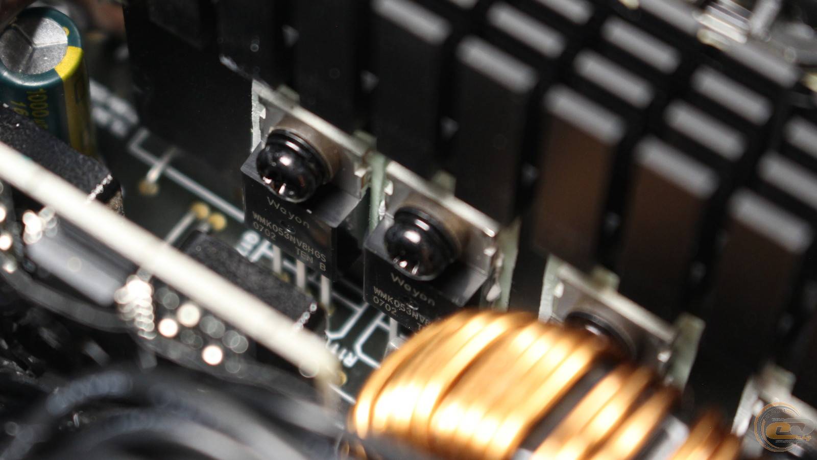 У складі випрямляча напруги працюють польові транзистори виробництва китайської компанії Wayon, закріплені на спільному радіаторі.