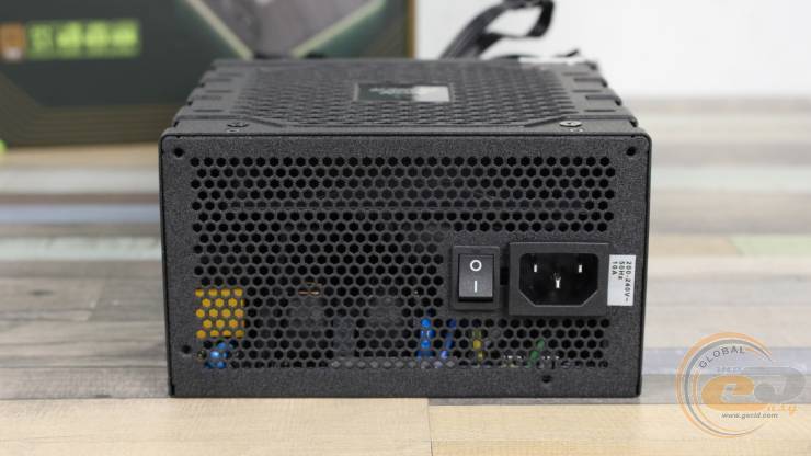 Тильна частина виконана у стандартному форматі: роз’єм живлення, вимикач та вентиляційні отвори у вигляді «стільників».