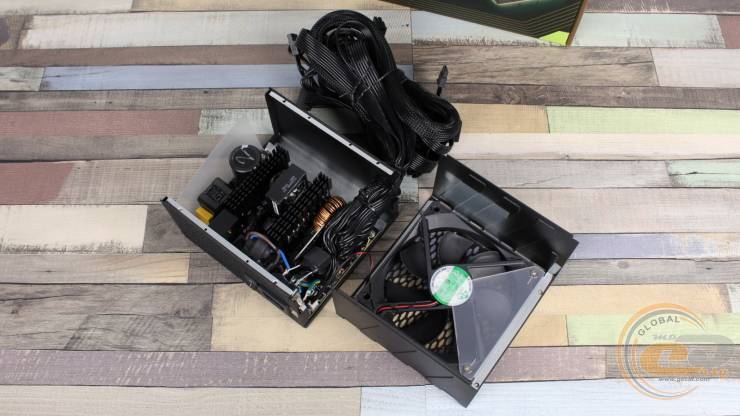 Основні роз’єми живлення представлені стандартним набором: 20+4-контактний ATX та пара 4+4-контактних ATX12V. Для відеокарт передбачено три 6+2-контактні PCIe на двох окремих кабелях, а також сучасний конектор PCIe 5.1 (12V-2×6) потужністю 600 Вт. Для периферії є шість SATA та три PATA на трьох окремих проводах. До речі, 750-ватник отримав на один 6+2-контактний PCIe менше, проте в іншому набір конекторів аналогічний.