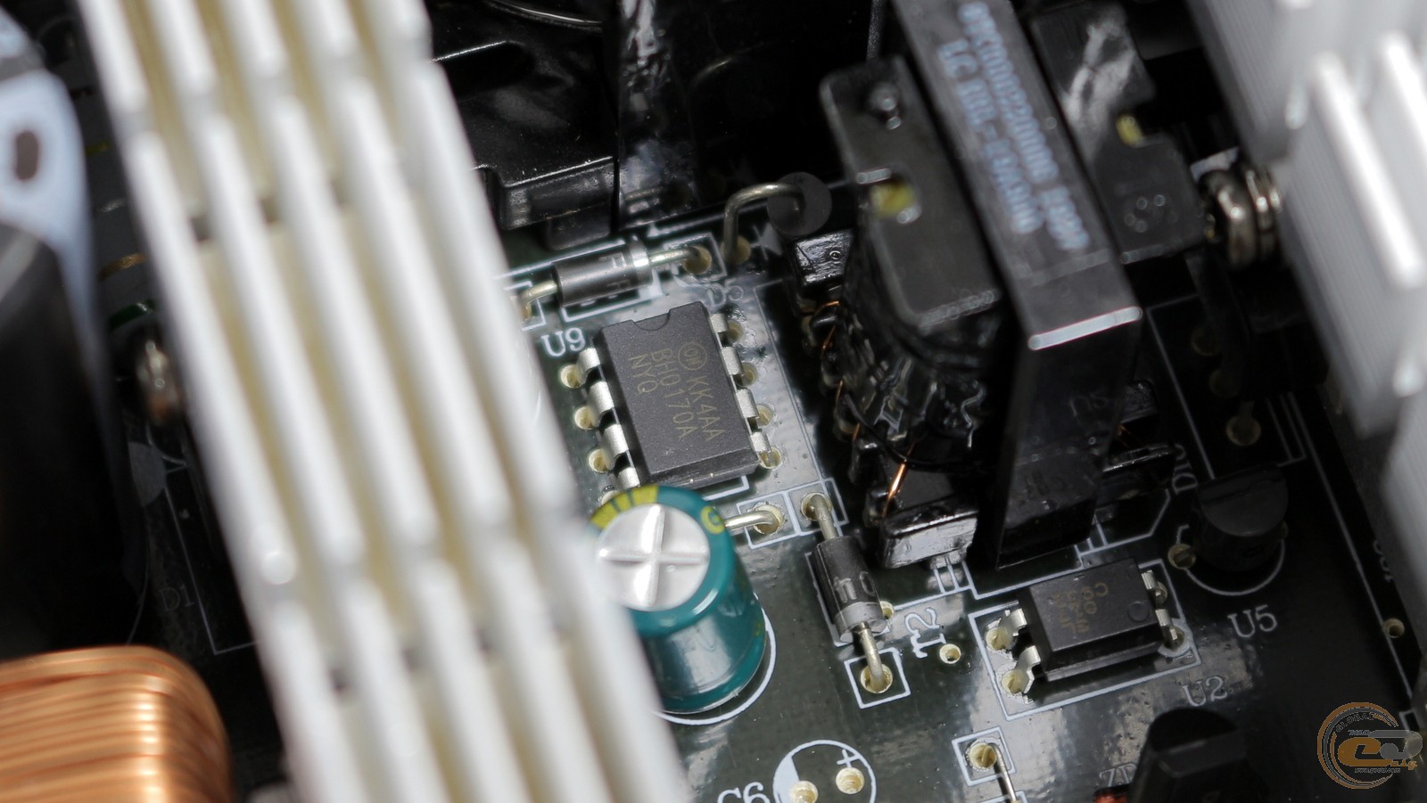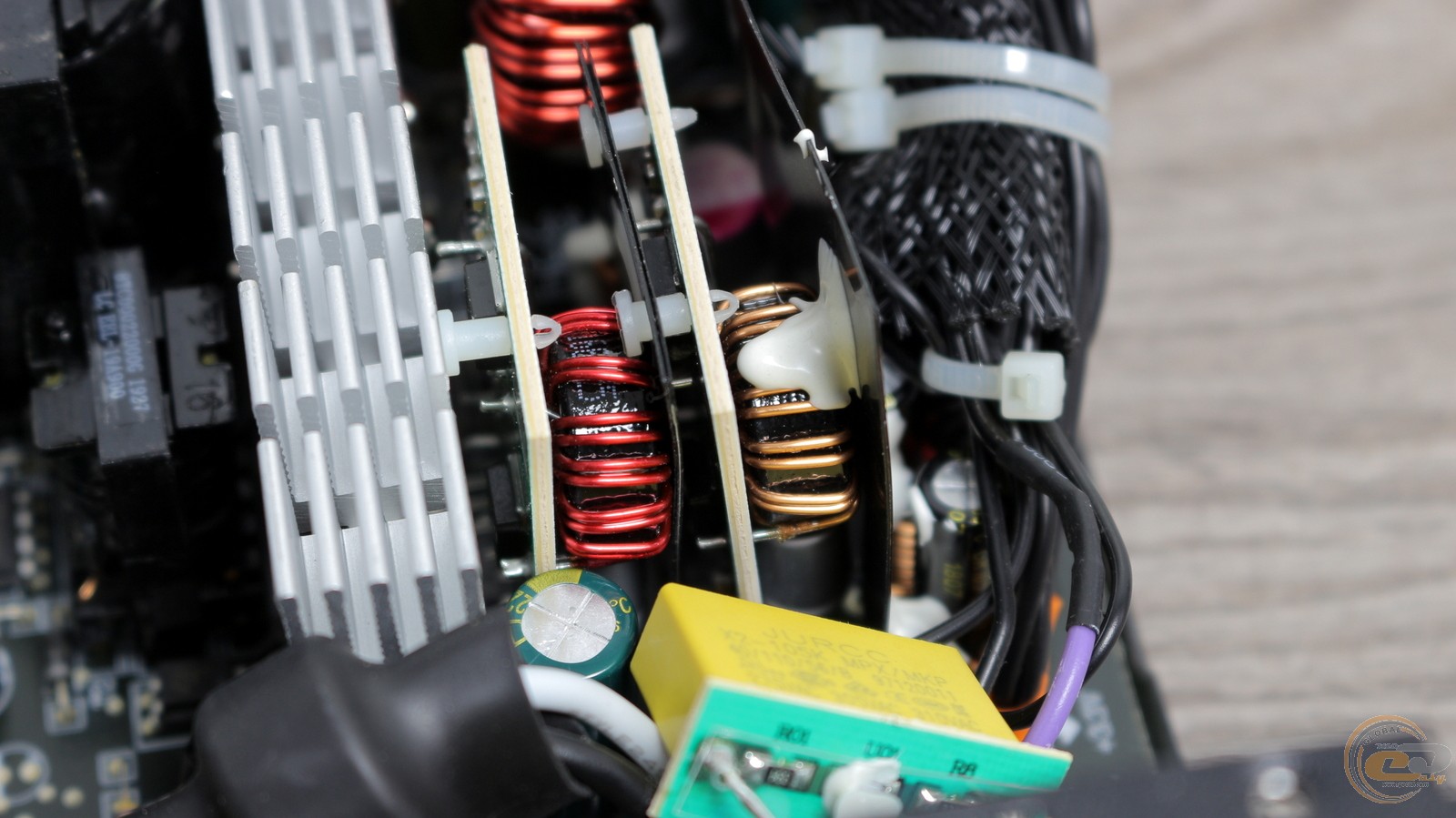 Наступний охолоджувач прихистив транзистори первинного ланцюга і силові елементи вузла APFC. До складу останнього також увійшов великий дросель, розміщений біля краю плати.