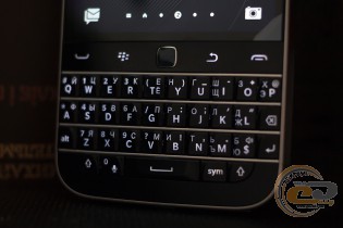 Свого часу, саме завдяки фірмовим клавіатурам «ожиновим» вдалося завоювати прихильність багатьох покупців, що гідно оцінили преваги такого рішення. Тому не дивно, що в BlackBerry Classic використовується фізична QWERTY-клавіатура з рядом удосконалень, особливо в плані сенсорної взаємодії. Це дає змогу зберегти традиційних клієнтів і спробувати переманити нових. Клавіатура досить зручна, із фірмовою, дещо скошеною формою клавіш. Рядів кнопок всього 4, з розділенням у вигляді металевих перегородок. Висота клавіатурного блоку складає 30 мм (разом з блоком керування – 47,5 мм), а розміри самих клавіш досягають 6,5 х 6,5 мм. У трьох верхніх рядах розташовано по 10 кнопок, а в нижньому (дещо округленому у країв) − їх 5, тобто в сукупності маємо 35 кнопок. Вони мають подвійне позначення (літери, цифри та символи). Додатково присутня кирилиця, яка нанесена методом лазерного гравірування. Ввід другорядних символів здійснюється через клавішу