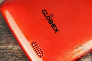 Задня панель Globex GU5011W виконана з глянцевого пластику, що має характерні недоліки. Набір елементів класичний: модуль камери зі спалахом, логотип виробника та решітка мультимедійного динаміку. Нижня область позбавлена будь-яких підвищень, тому динамік може приглушуватися, якщо гаджет лежить на м’якій горизонтальній поверхні екраном догори.