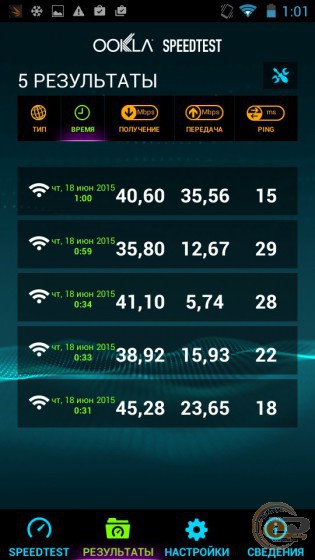 Перевірка швидкісних характеристик Wi-Fi (провідне підключення 100 Мбіт/с, маршрутизатор з підтримкою стандарту 802.11n) показала непогані результати. Пошук точок підключення займає мінімум часу, а з’єднання характеризується необхідною стабільністю.