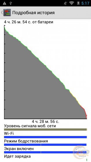 В результаті перегляду HD-відео (MPEG-4 / AVC, контейнер MKV, потік 4 Мбіт/с) при 50% яскравості дисплею та ввімкнених модулях Wi-Fi і GPS пристрій розрядився майже за 4,5 години. Ігрова імітація з використанням Dead Trigger 2 при 100% яскравості дисплея і ввімкнених модулях Wi-Fi і GPS вичерпала заряд акумулятора майже за 2 години.