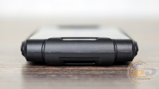 Універсальний аудіороз’єм (mini-jack 3,5 мм) та інтерфейс micro-USB розташовані на верхньому торці. Вони прикриті заглушкою, яка захищає від потрапляння пилу та вологи. Варто відзначити, що порти заглиблені, тому стандартні конектори не підходять і доводиться користуватися лише подовженими комплектними, про що слід пам’ятати, ідучи з дому чи відправляючись у подорож.