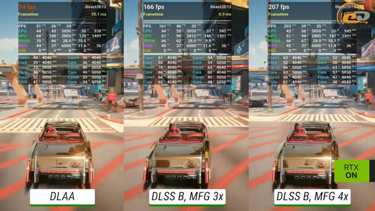 Наступною сходинкою будуть 216 середніх FPS у режимі x3. А максимальні понад 270 кадрів за секунду карта здатна видати в режимі MFG x4.