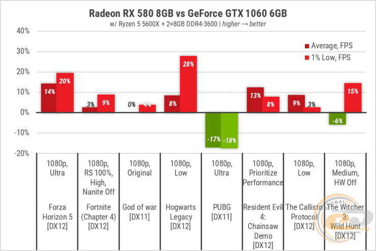 GeForce GTX 1060 6GB VS Radeon RX 580 8GB